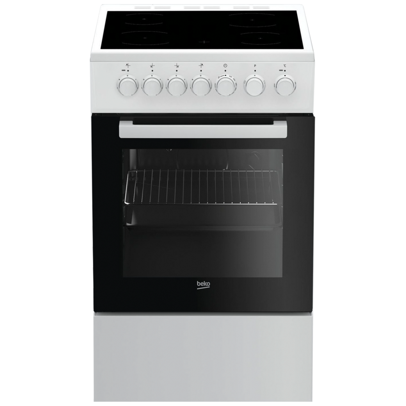 Štednjak, 4 staklo – keramičke ringle, prednja lijeva 180 / 120 mm- 1700W / 700W, zadnja lijeva 140 mm – 1200W, prednja desna 140 mm – 1200W, zadnja lijeva 180mm – 1700W, mehanički tajmer, pećnica 60 lit., svjetlo u pećnici, emajlirana unutrašnjost, ladica za spremanje, električni gril, plitki pleh, žičana rešetka, boja bijela, energetski razred A Garancija: 60 mjeseci