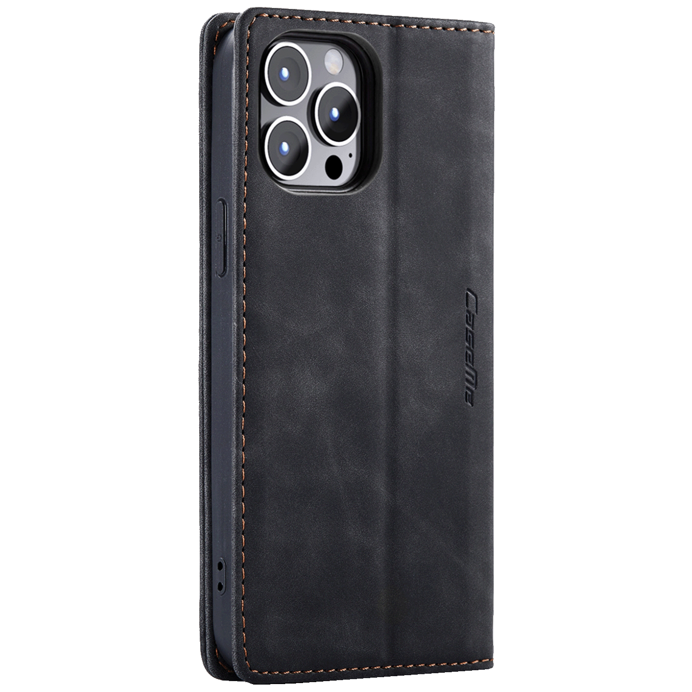 CaseMe Futrola preklopna za iPhone 15, koža, crna – Flip Leather Phone Case iPhone 15