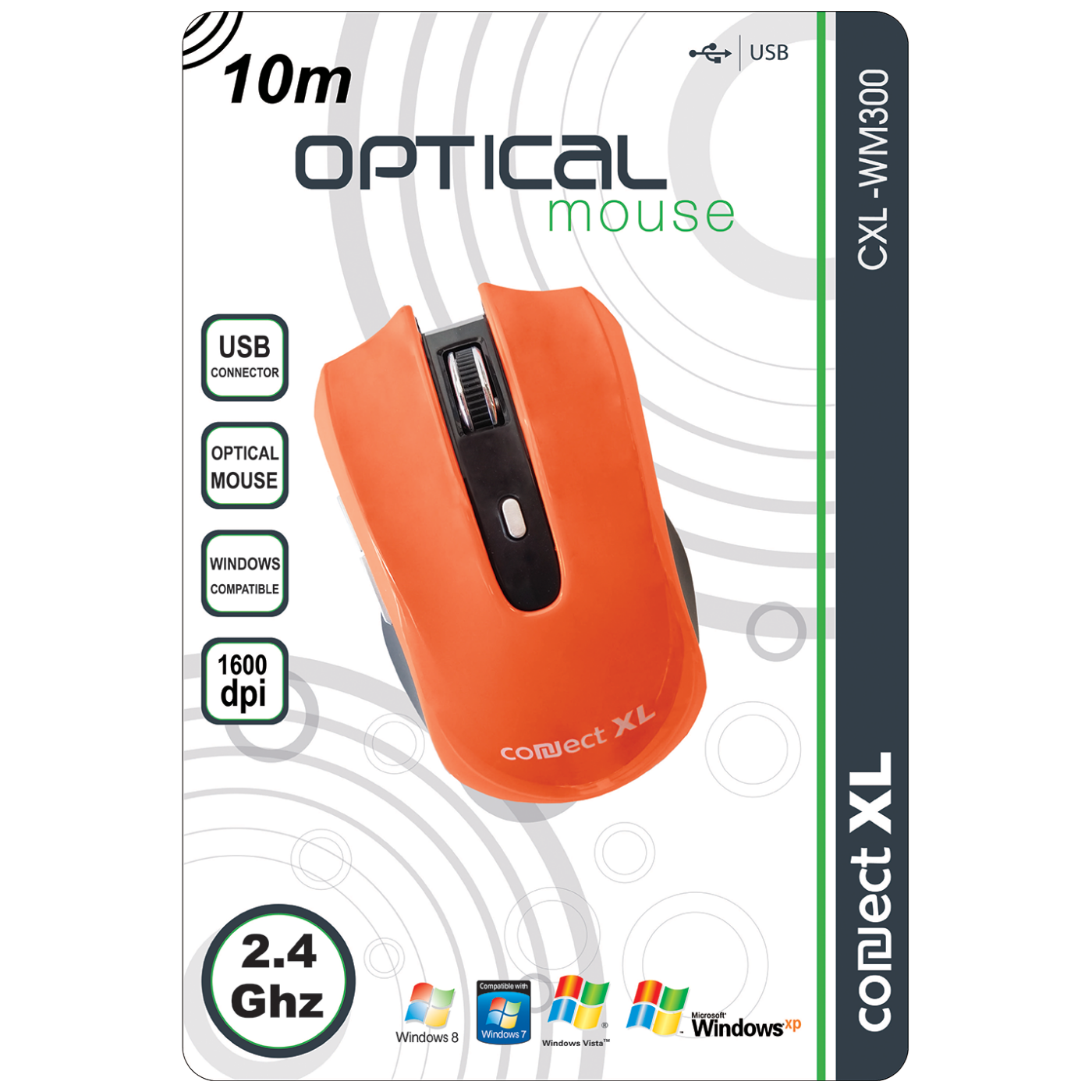Connect XL Miš bežični, 1600dpi domet 10 met, narandžasta boja – CXL-WM300