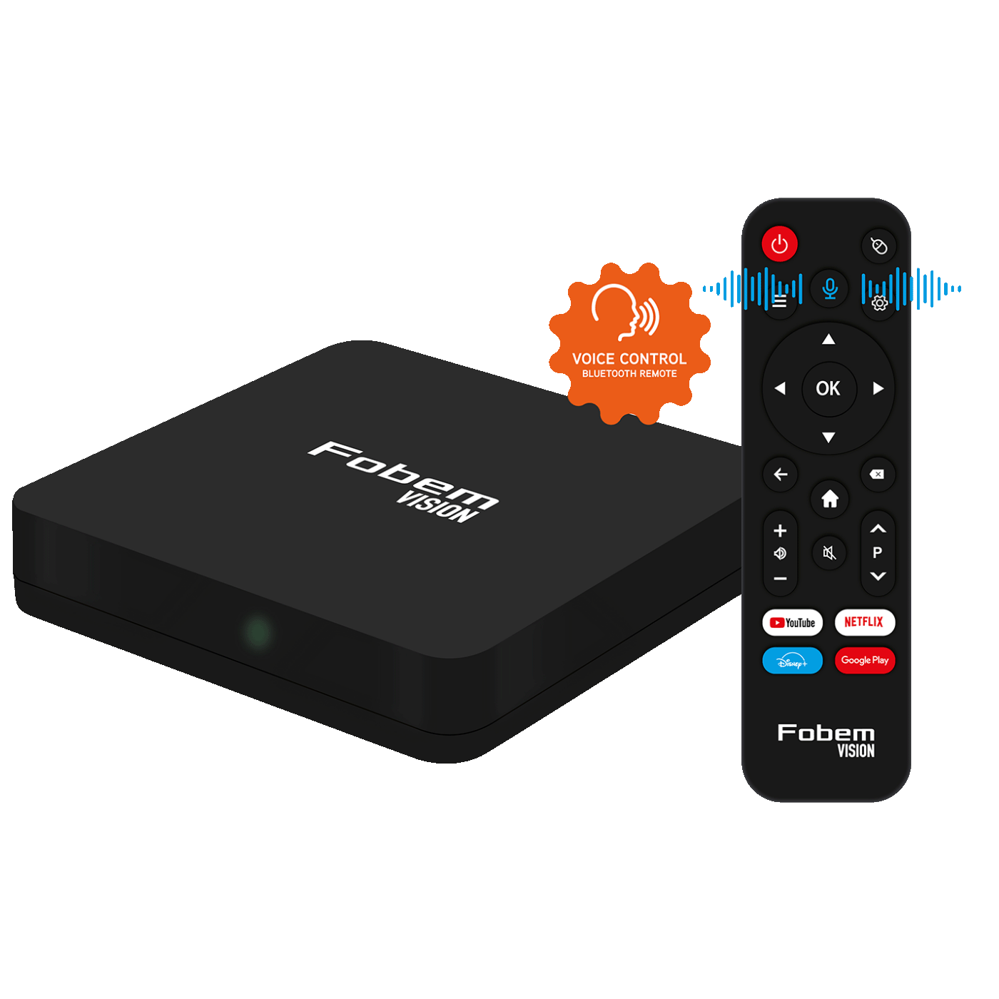 Prijemnik IPTV@Android, Fobem Vision • Chipset Allwinner H618 • A53 Cortex 1.5 Ghz 4 jezgreni procesor • 2GB RAM; 32GB Memorija • WiFi6 Dual Band 2.4 / 5,8 GHz • WiFi HotSpot • Bluetooth 5.2 • GPU G31 5 Core • HDMI 2.0 4K 60fps 6K 30fps, HDR10+ • RJ 45 • 2 x USB 2.0 • AV izlaz • Bluetooth daljinski upravljač • Glasovne naredbe • Android 12 Garancija: 12 mjeseci