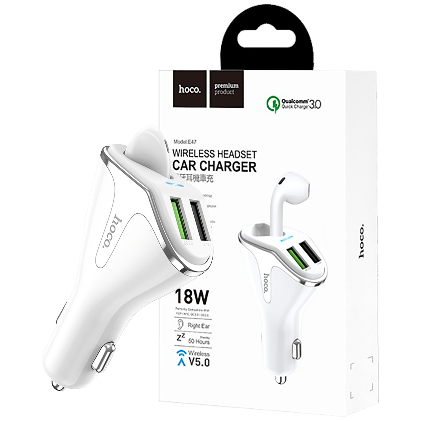 Univerzalni Auto punjač sa bežičnom slušalicom, 2 x USB, 12-24V, 5V / 3.1A / 18 W, brzo punjenje standard QC3.0, bežična slušalica v5.0, 35 mAh, vrijeme punjenja 1.5 h, vrijeme razgovora do 2.5 h, vrijeme na čekanju do 50 h, boja bijela Garancija: 12 mjeseci