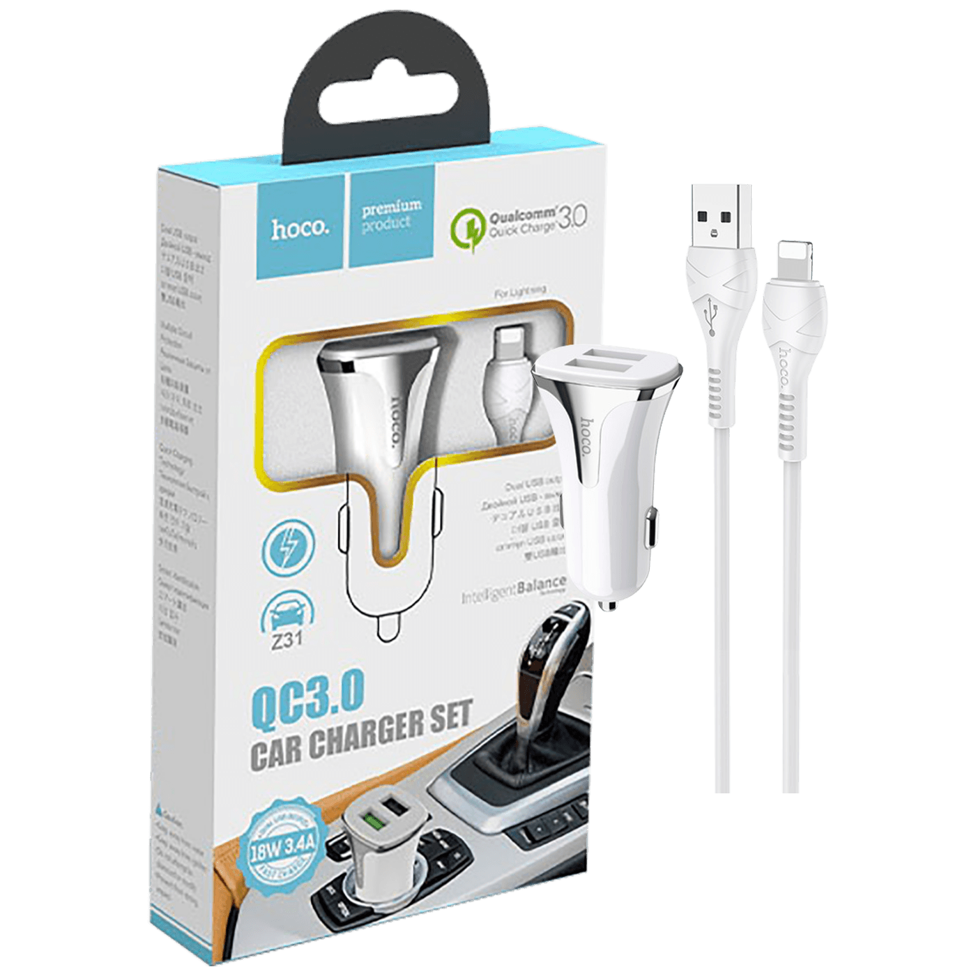 hoco. Auto punjač sa Lightning kabelom, QC, 2 x USB, 3.1 A – Z31 Universe double port, Lightning