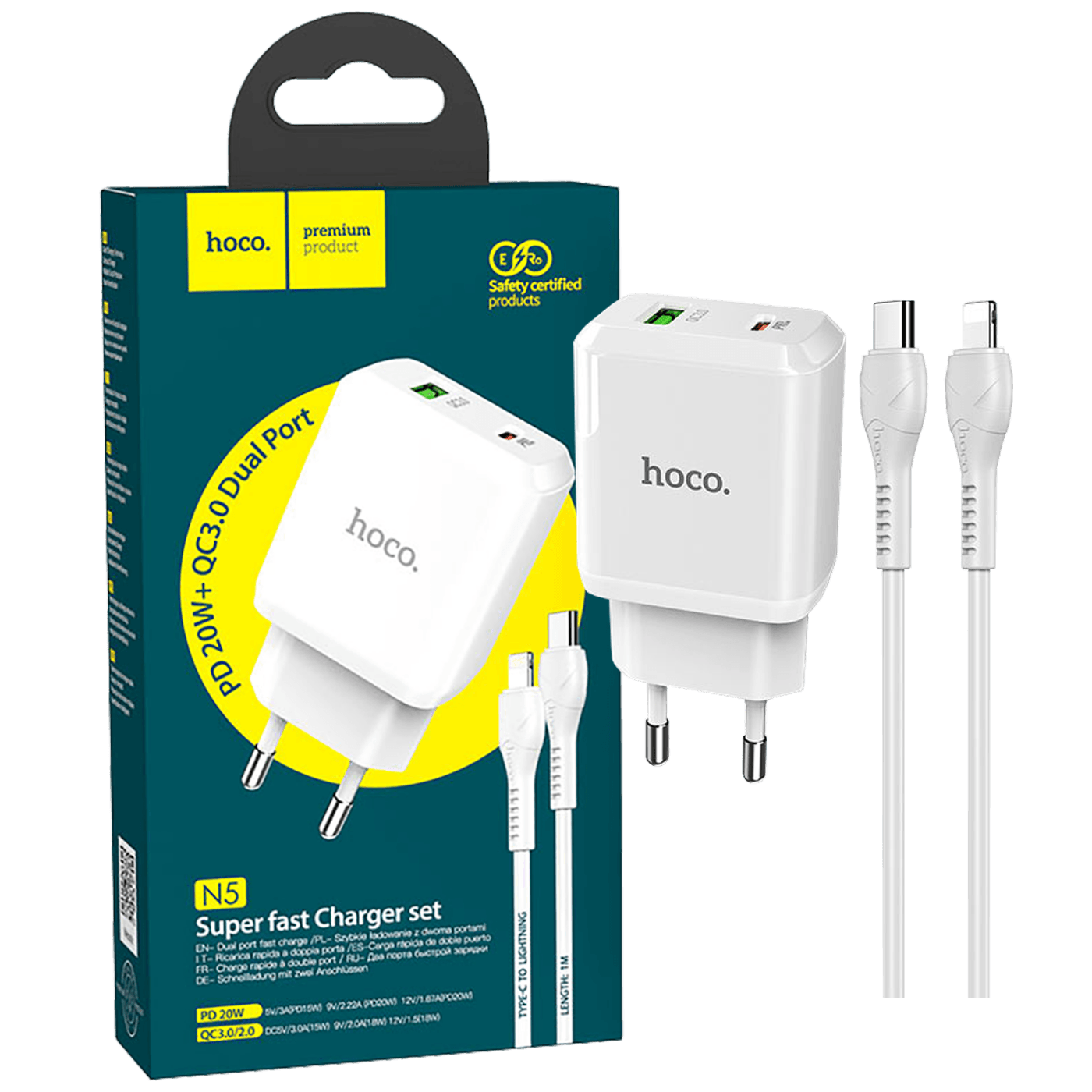hoco. Punjač kućni sa Lightning kabelom, brzi, PD 20W, QC3.0 18W – N5 Favor, type C-Lightning, White