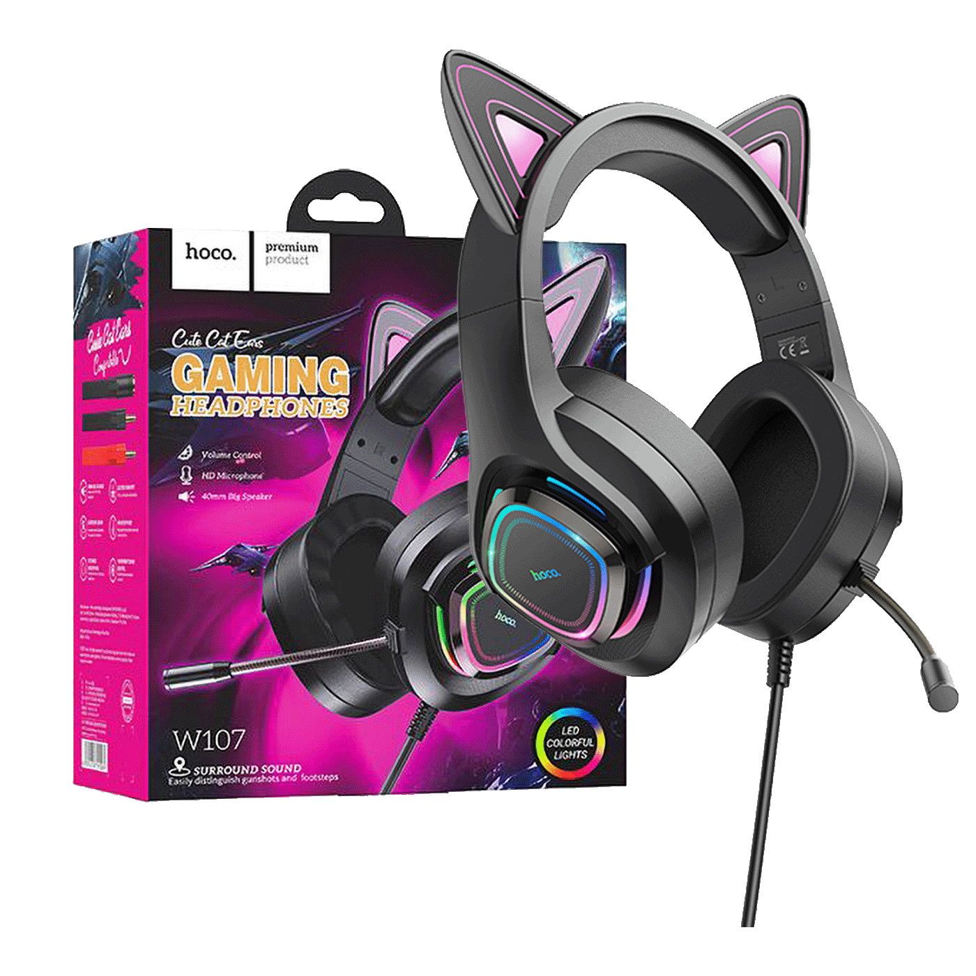 hoco. Slušalice sa mikrofonom, gaming, USB/3.5 mm, LED – W107 Cute Cat Black/Pink