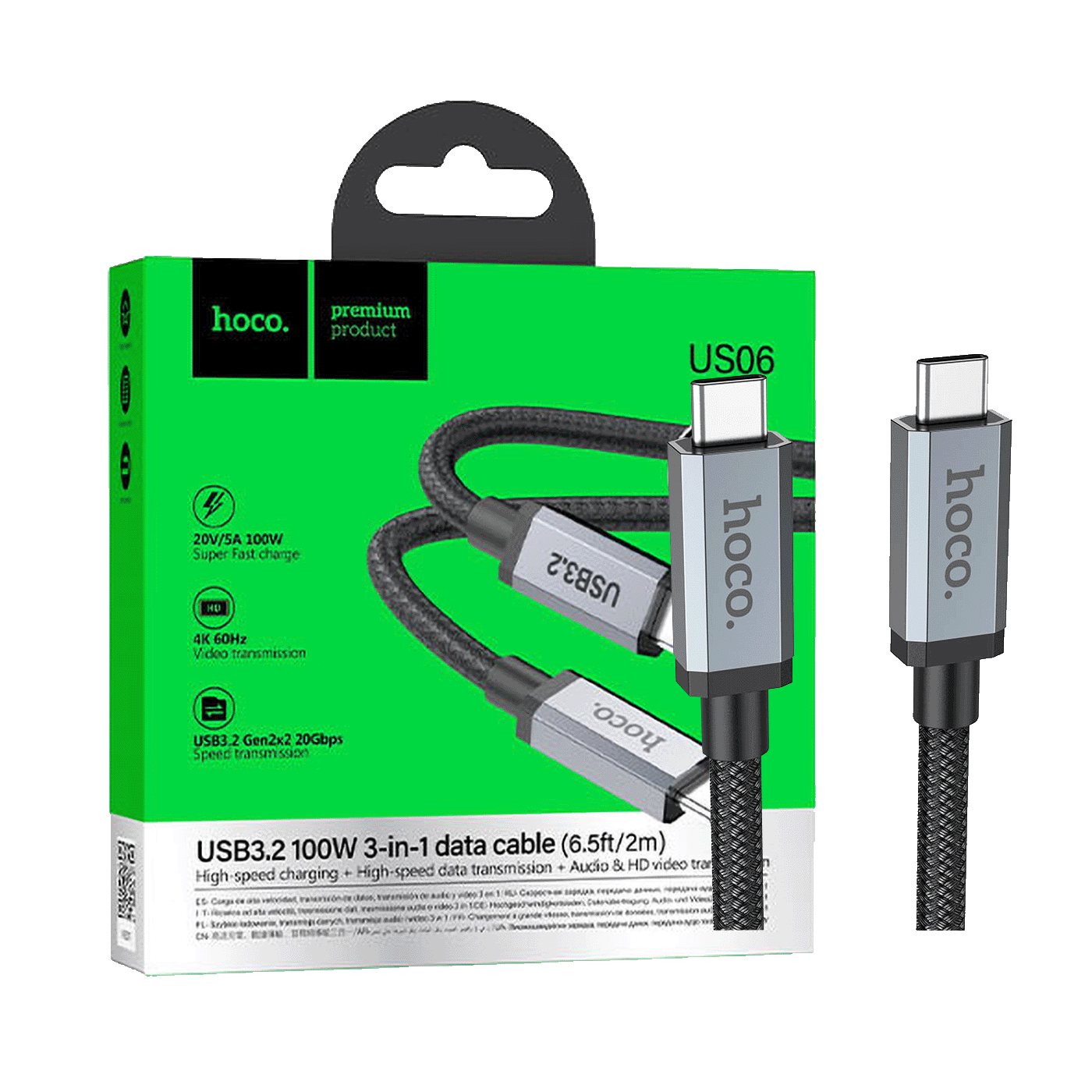 hoco. USB kabl za smartphone, 100W, US06, USB3.2 type C, 2 met. – US06 2M