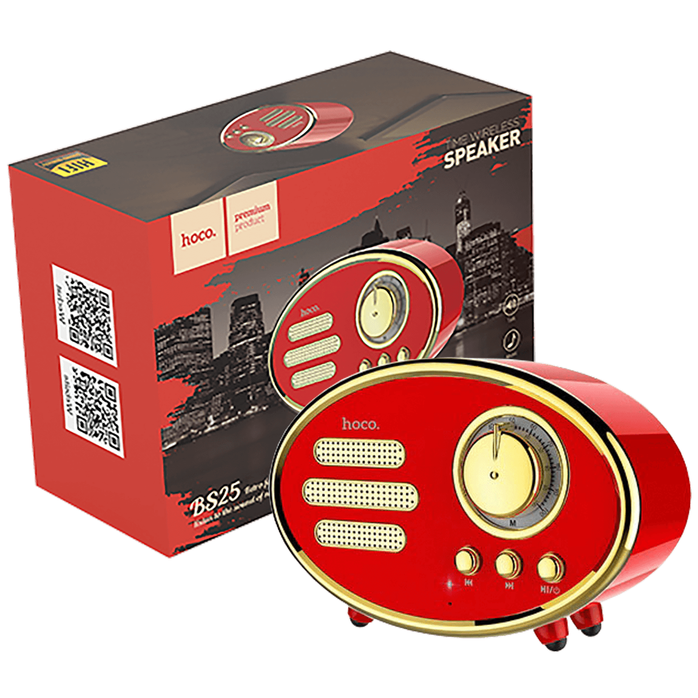 hoco. Zvučnik bežični, Bluetooth,retro, 1200 mAh, 5 h, 5 W, crvena – BS25 Time, Bluetooth, retro, red