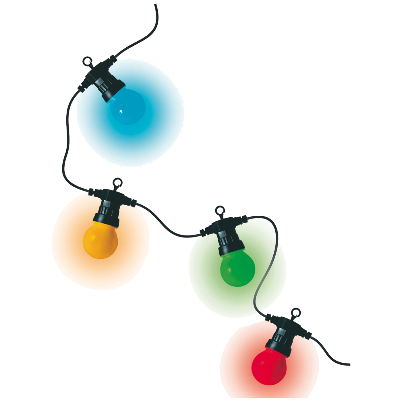 Dekorativna LED rasvjeta , 30 x plastičnih LED žarulja na kabelu dužine 4.5 met., kolor ( RGB )svjetlosti, napajanje 230V / 24 C adapter, dužina napojnog kabela 5 met., za vanjsku i unutarnju uporabu Garancija: 12 mjeseci