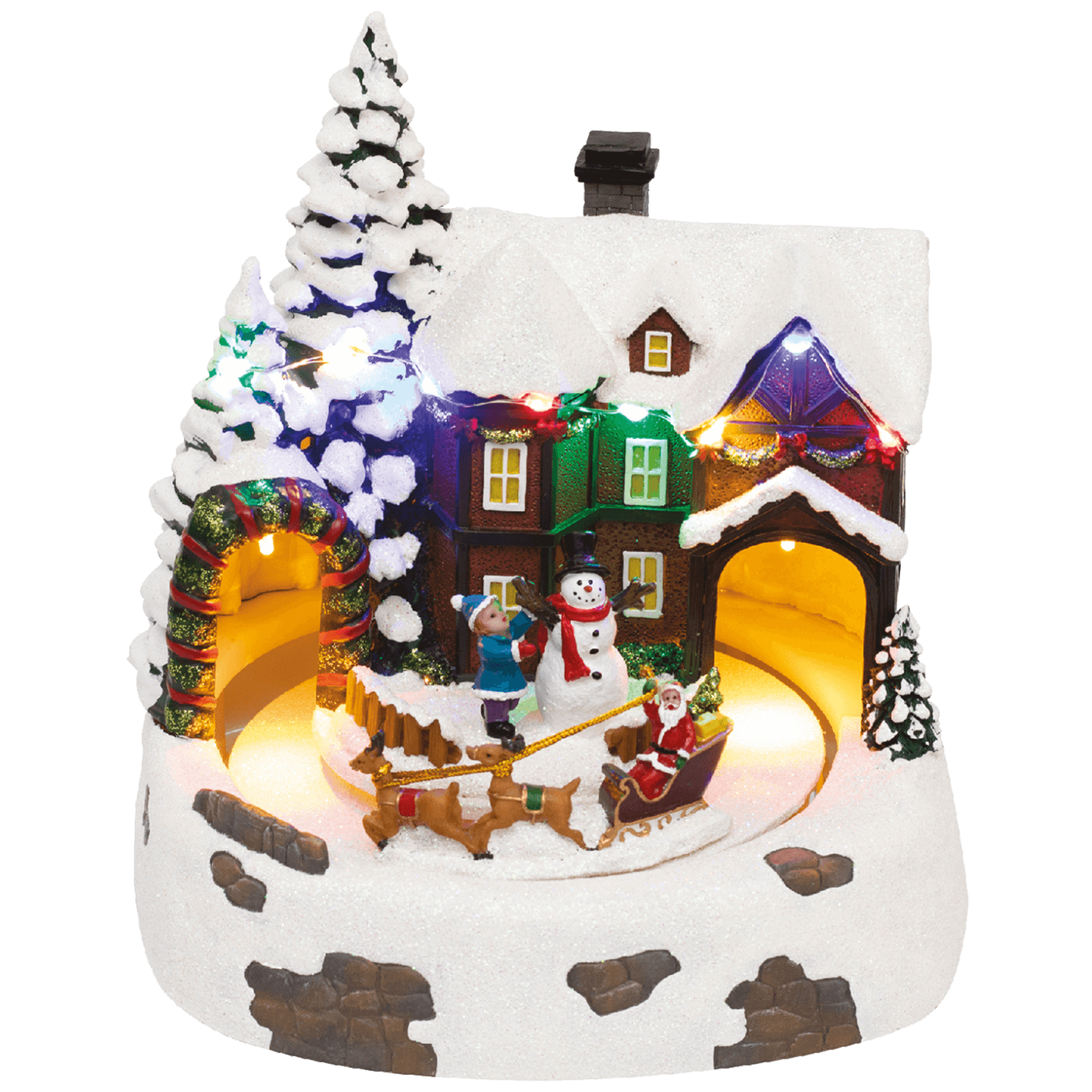 Dekorativna LED rasvjeta, Diorama, snježna kuća, za unutarnju upotrebu Sa šarenim LED osvjetljenjem, sa saonicama sobova Napajanje 3 x 1,5 V (AA) baterije, nisu uključene u pakiranje Garancija: 12 mjeseci