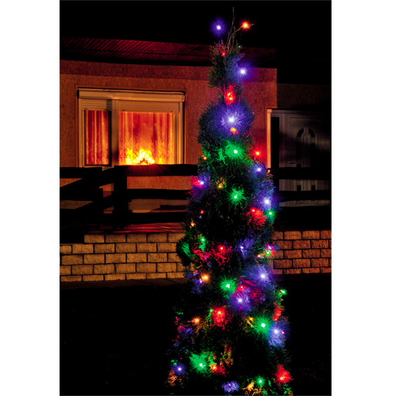 Dekorativna LED rasvjeta, za vanjsku i unutarnju upotrebu, 100 LED dioda, kabel dužine 7 met, boja svjetlosti kolor (plava, crvena, žuta), 8 programa rada, napajanje 230 V / 24 V adapter, IP44 Garancija: 12 mjeseci