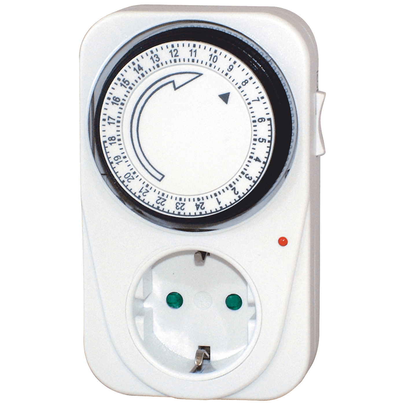 Mehanički programator vremena, 24 satno programiranje sa vremenskim intervalima od 15 minuta, napajanje 250 V ~ / 16 A / 3500 W, IP20, zaštita za djecu Garancija: 12 mjeseci