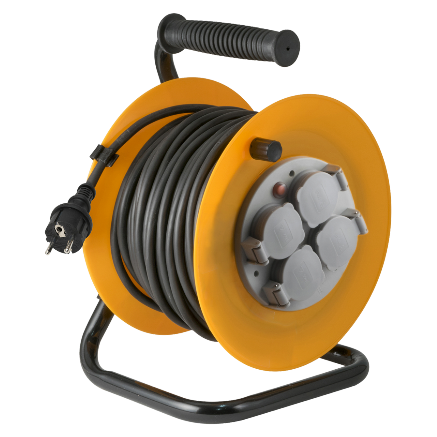 Motalica za kabel, HJR 10-50, kabel dužina 50 metara, gumirani kabel HO7RN-F, 3 x 1.5 mm², 4 utičnice sa uzemljenjem, utičnice zaštićene poklopcem, toplinska zaštita, gumb za reset toplinske zaštite, plastično kućište , ručka za lakše nošenje, 250V / max. 1000W u namotaju / 3000W razmotano, stupanj zaštite IP44 Garancija: 12 mjeseci