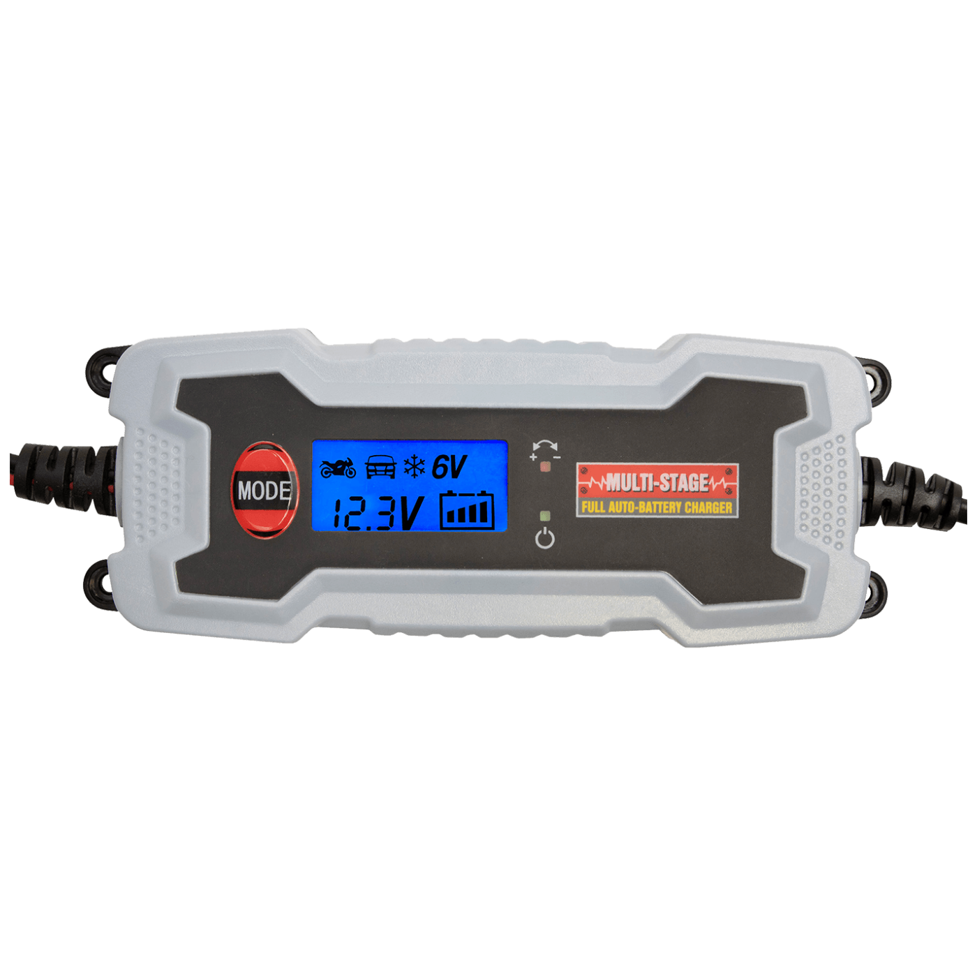 Automatski punjač akumulatora, 6 – 12 V, struja punjenja 1.2 – 120 Ah / 0.8 – 3.8 A, LCD zaslon sa voltmetrom i plavim osvjetljenjem, 5 automatskih programa punjenja. Upotrebljiv kako za klasične olovne akumulatore, akumulatore sa gelom bez održavanja tako i akumulatore sa staklenim vlaknima. Zaštita od obrnutog polariteta, zaštita od kratkog spoja, zaštita od pregrijavanja, zaštita od neispravnog akumulatora, punjenje u više nivoa, regeneracija starih akumulatora, dimenzije 185 x 47 x 70 mm Garancija: 12 mjeseci