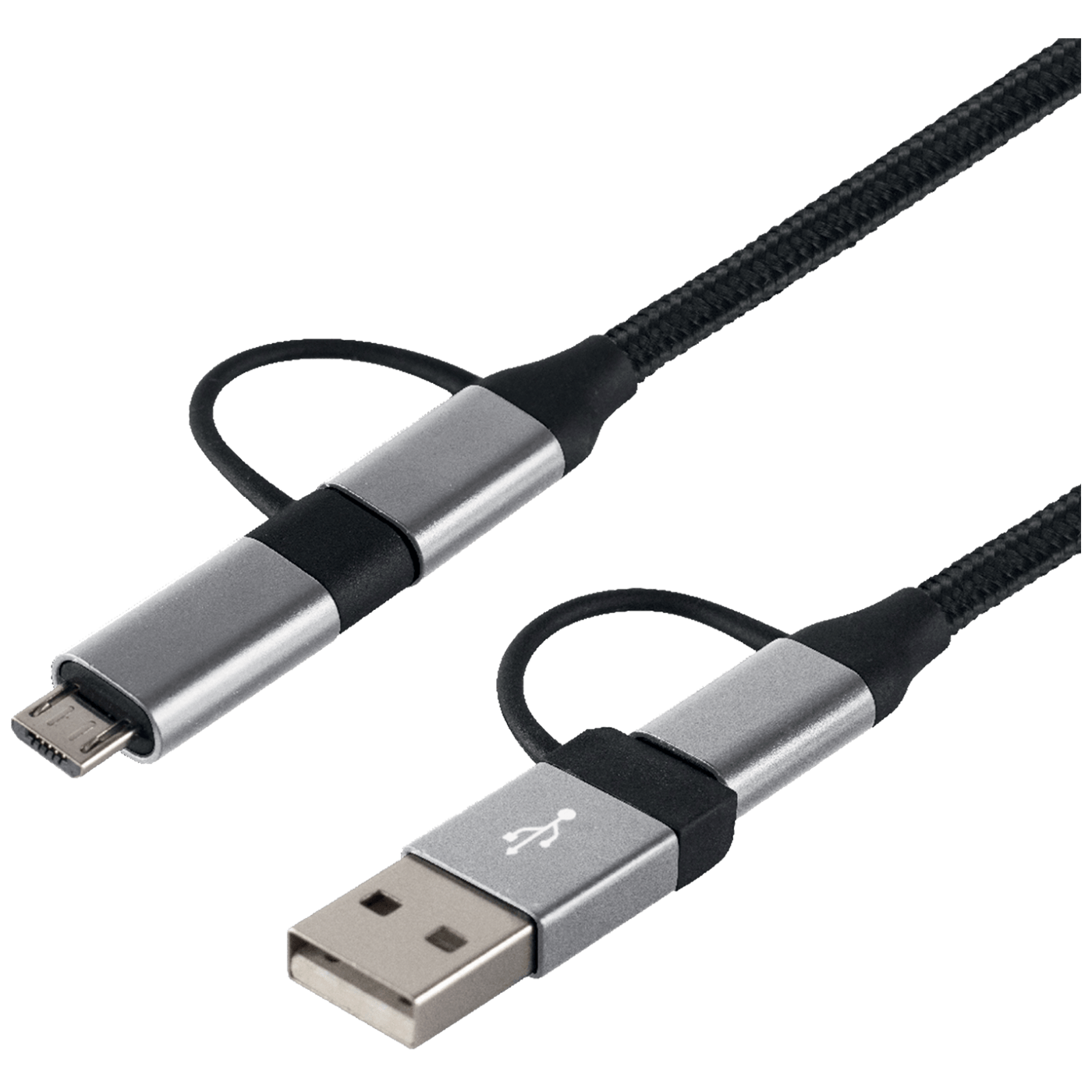 USB kabel za punjenje, 4u1, multi, zamjenjuje 4 različita kabela, C-C / C-microUSB / C-USB A / USB A-microUSB, pogodno za normalno, QC i PD brzo punjenje, masivni metalni oklop utikača i upleteni kabel bez zapetljavanja, dužina 1.5 met. Garancija: 12 mjeseci