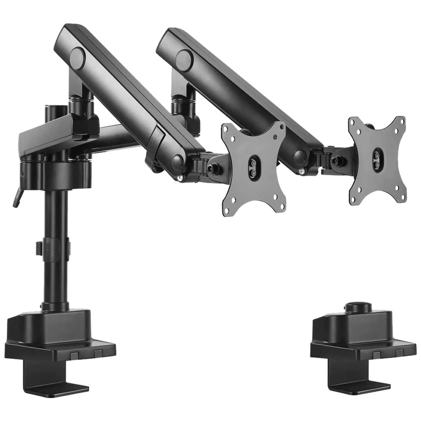 Držač za 2 monitora MC-812 pruža veliku udobnost i optimizuje ergonomiju dok radite na računaru. Zahvaljujući podesivom kutu nagiba i mogućnosti rotacije i promjene visine, nosač osigurava da se položaj prilagodi individualnim željama. Ruke su izrađene od visokokvalitetnog aluminija – opremljene su izdržljivim nosačem za montažu koji omogućava pričvršćivanje na vrh stola ili druge ravne površine. Savršeno za upotrebu u uredu i kod kuće – bez bušenja rupa u stolovima ili zidovima. Nosivost do 16 kg. 8 kg.po nosaču, podesivi nagib od + 90° ~ -90°, podešavanje rotacije + 90° ~ -90°, podešavanje visine 180 mm – 620 mm, organizacija kablova, VESA razmak rupa od 75 x 75 ili 100 x 100 mm, plinske opruge Pričvršćivanje preko stezaljke za stol, pribor za montažu uključen u pakiranje. Garancija: 12 mjeseci