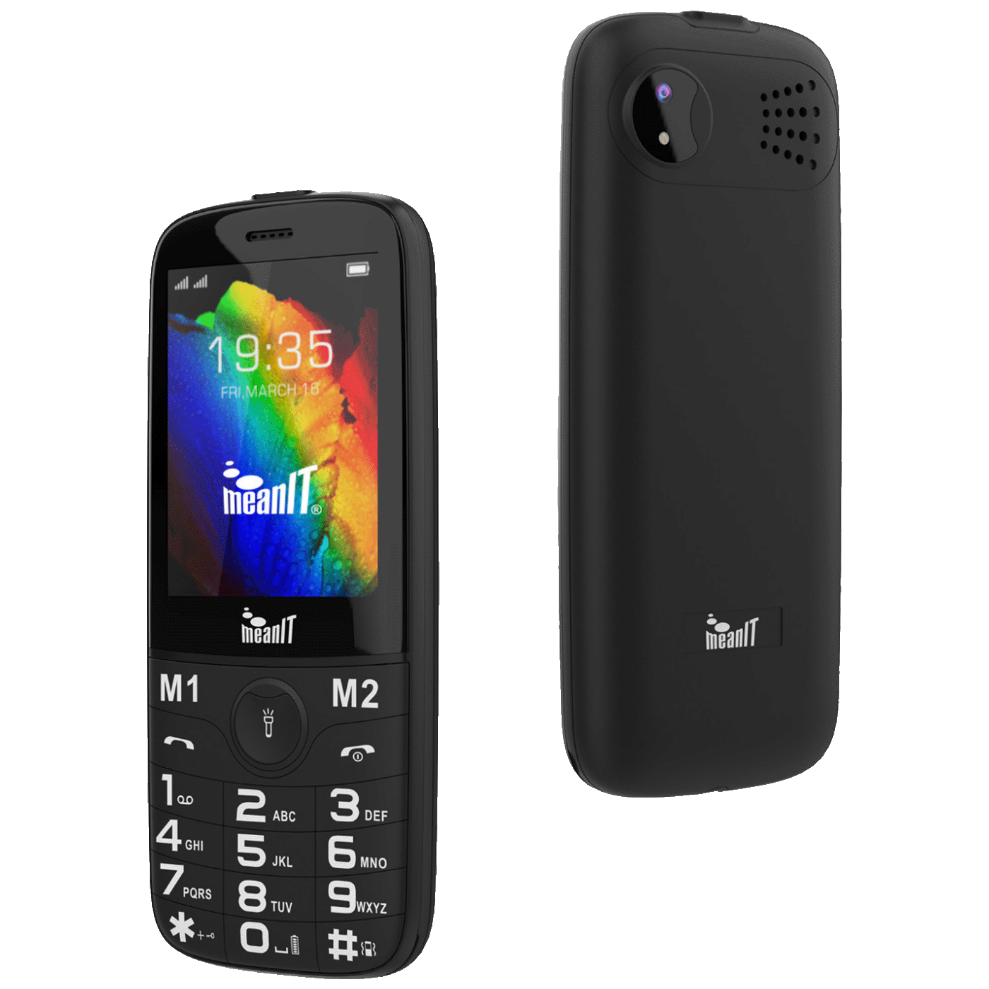 meanIT / SENIOR 20 MOBILNI TELEFON CRNI Veliki ekran 2,8” (Velike tipke, velika slova i brojke) Velika baterija za duže razgovore i vrijeme čekanja Velika baterija 1.800mAh Tipke M1,M2 za brzo biranje LED lampica i FM radio Kamera s bljeskalicom Dual SIM Utor za memorijku karticu Pametni telefoni za starije osobe Garancija: 24 mjeseci