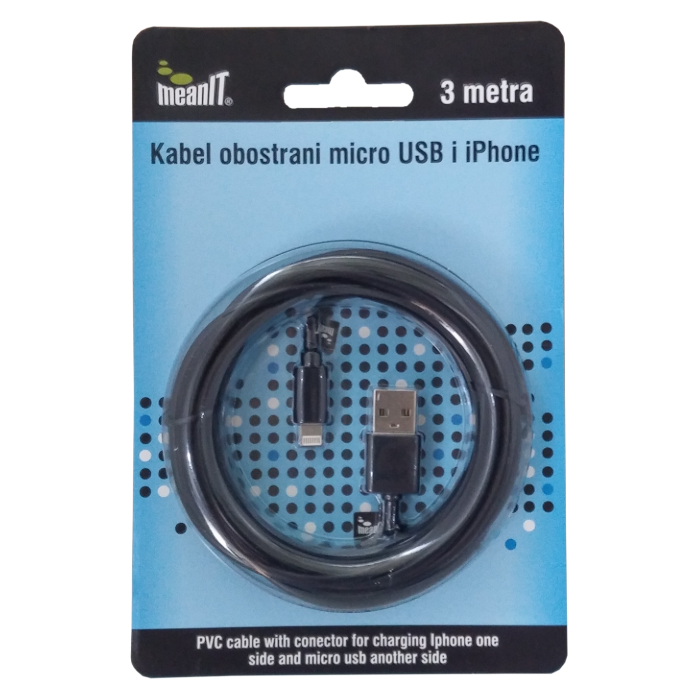 MeanIT USB kabl sa micro USB i iPhone priključkom, 3 met – KABEL MICROUSB / iPHONE