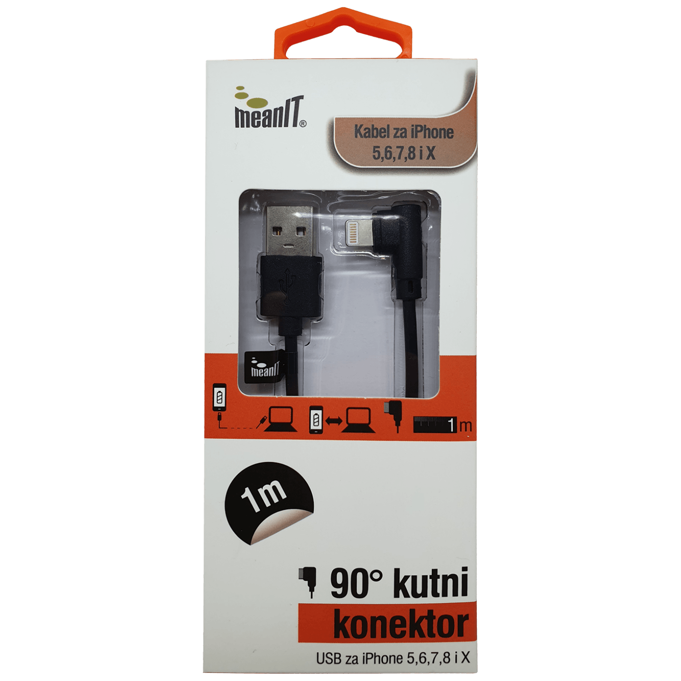 MeanIT USB kabl za Iphone 5 / 6, dužina 1.0 metar, crni – KABEL ZA IPHONE 5 / 6