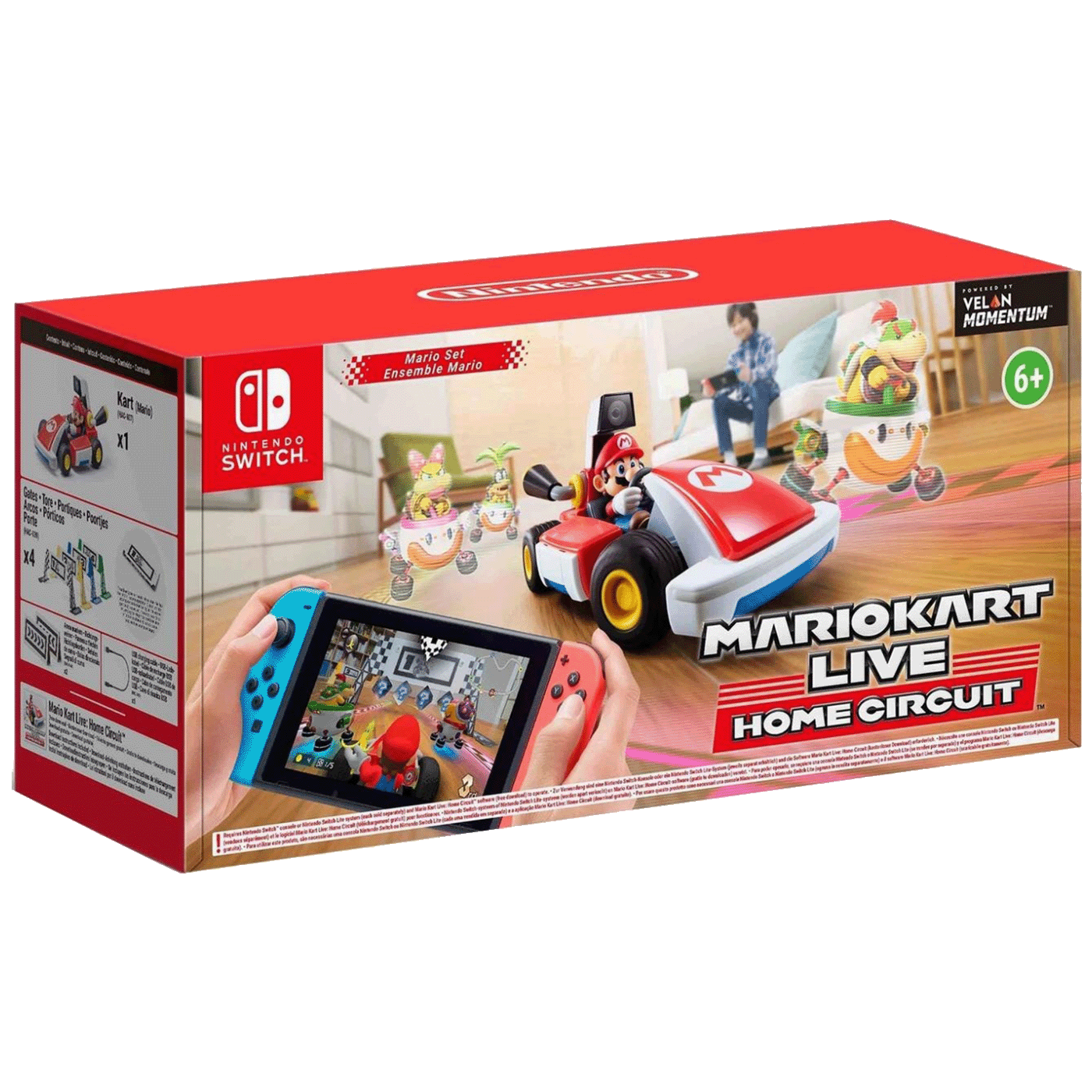 Mario Kart Live:Home Circuit Mario Set Zamislite da se vaša trpezarija pretvara u svijet u kojem se banane i školjke izmjenjuju u ritmu motora vašeg kartinga, također stvarnog… mogućnosti su beskrajne! Neka vaša mašta uzleti i stvori vlastitu karijeru u stvarnom svijetu uz Mario Kart Live: Home Circuit ekskluzivno na Nintendo Switch i Nintendo Switch Lite. Postavite kapije i prilagodite staze u stvarnom svijetu, a zatim ih pogledajte kako oživljavaju u različitim okruženjima u igri poput džungle i snježnih pejzaža i prepreka. Koristite predmete iz cijele kuće da prilagodite svoje staze i dodate izazov, a zatim gledajte kako igra pretvara vaš dom u Mario Kart svijet! Karting stvarno reagira na objekte i bonuse koji se nalaze na stazi: ubrzava kada se koristi gljivica i zaustavlja se na suhom mjestu kada ga, na primjer, pogodi granata. Sa svakom konzolom i kartom igra čak do 4 igrača u lokalnom načinu rada za više igrača. Garancija: 12 mjeseci