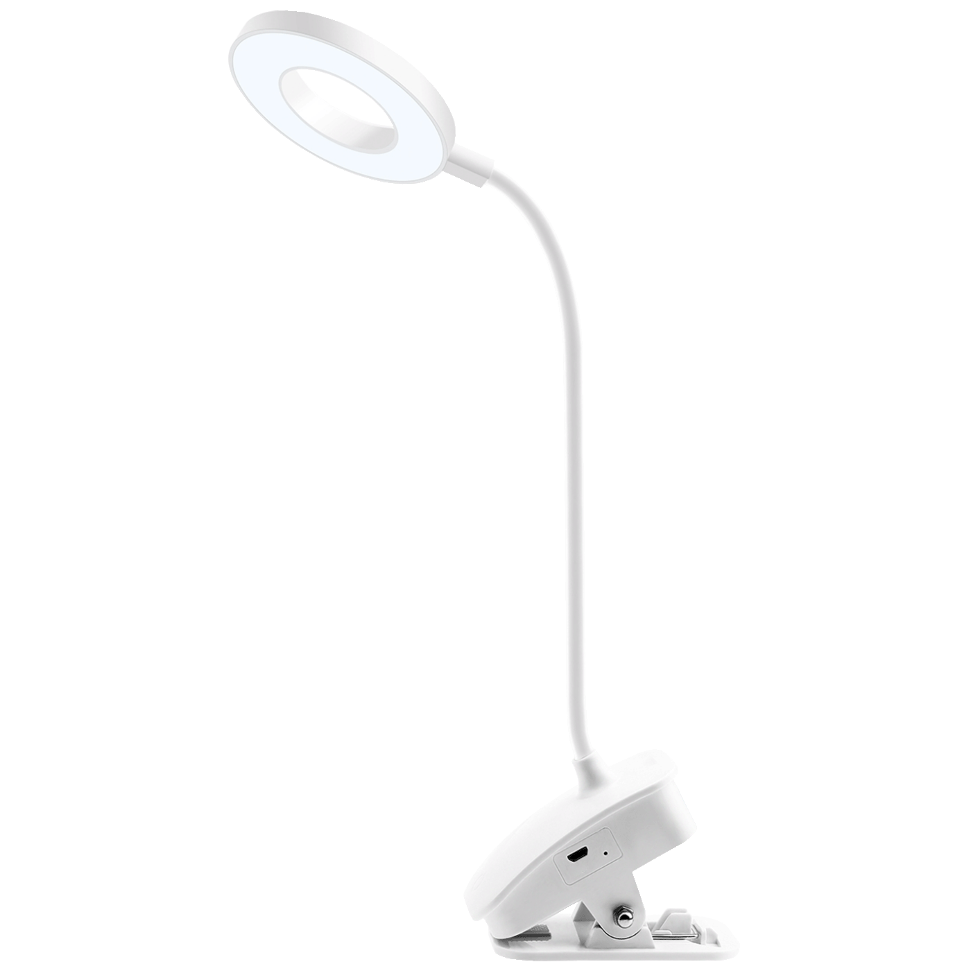 Stolna LED lampa 1. Ulazni napon DC 5V 2. Snaga 5W 3. Boja podesiva u tri boje (normalna bijela / prirodna bijela / topla bijela) 4. USB direktni utikač / punjiva baterija 18650 (nije uključena u pakiranje) 5. Materijal ABS, PC 6. CRI 80+ 7. Težina: 160 g. 8. Dimenzije 44 x 9 cm, dužina USB kabla 0.5 met. – Može se postaviti na radnu ploču ili stegnuti na ivicu stola, dizajn kopče 10 – 30 mm, ugrađen silika gel, stabilan i ne oštećuje sto – Svjetlo s konstantnom strujom, stabilno bez treperenja, ugodno svjetlo i zaštita za oči, ušteda energije i zaštita okoliša – Ekološki prihvatljiv dizajn ABS ruke lampe, može se savijati i podešavati po želji – Kliknite na prekidač da biste smanjili temperaturu boje, 3 vrste boja mogu se podesiti – 2835 optički LED čip – Korištenje PC abažura visoke propusnosti svjetlosti, širokog ugla osvjetljenja Garancija: 12 mjeseci
