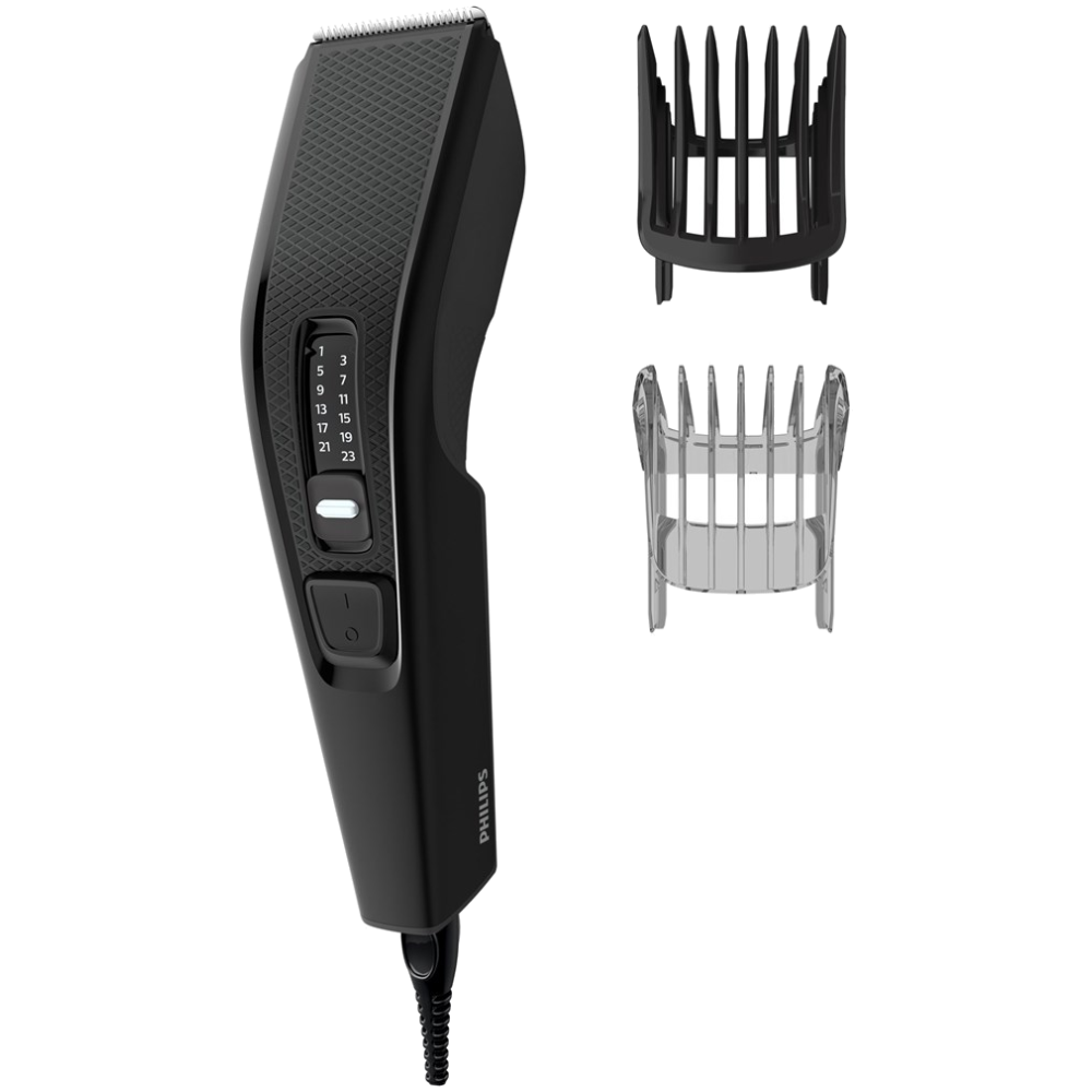 Brzo i lako ošišajte kosu. Tehnologija DualCut s oštricama koje se same oštre omogućuje dvostruko brže šišanje. Tehnologija Trim-n-Flow obuhvaća češalj dizajniran kako bi spriječio začepljenje pa ćete oblikovanje završiti u jednom potezu. Aparat za šišanje serije 3000 tvrtke Philips ima naprednu tehnologiju DualCut za maksimalnu preciznost. Ima dvostruke oštrice, a dizajniran je da ostane oštar kao prvog dana. Čelične oštrice koje se same oštre dizajnirane su da budu nevjerojatno dugotrajne. Čak i nakon 5 godina režu istom preciznošću kao prvog dana. Ošišajte kosu na točno željenu duljinu. Jednostavno odaberite jednu od 12 postavki duljine između 1 mm i 23 mm u koracima od 2 mm ili odvojite češalj za glatko podrezivanje od 0,5 mm. Električni aparati za šišanje za jednostavno podrezivanje duže ili trodnevne brade, prilagodljivi češalj za bradu ima 12 postavki duljine između 1 mm i 23 mm u koracima od 2 mm, a češalj možete u potpunosti odvojiti za glatko podrezivanje od 0,5 mm. Kabel za napajanje duljine 1,8 m pruža konstantno napajanje. Garancija: 24 mjeseci