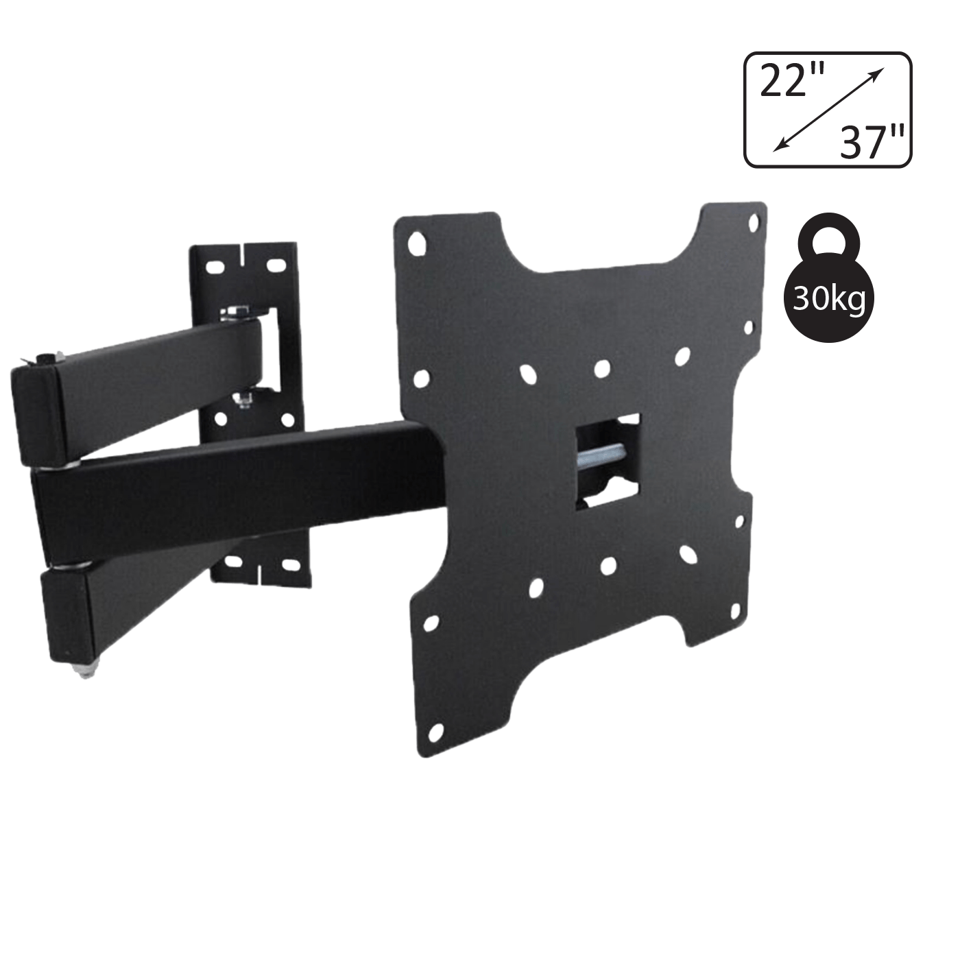 Zidni nosač za TV prijemnike, 22”- 37”, maximalno opterećenje 30 kg, VESA Standard 100 x 100, 200 x 200, zglobni, omogučuje okretanje TV prijemnika na desnu i lijevu stranu. Pakiranje: set vijaka za montažu Garancija: 12 mjeseci