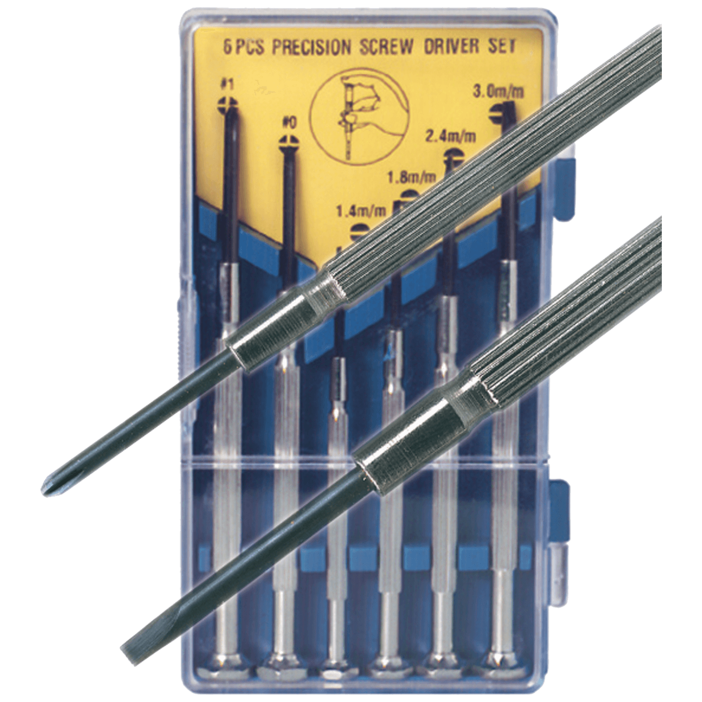 Set 6 komada preciznih odvijača, metalne konstrukcije sa rotirajućom zaštitnom kapicom, ravni 1.4 / 2 / 2.4 / 3mm , PH0 / PH1 Garancija: 12 mjeseci
