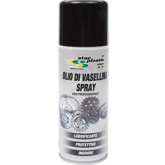 Sprej -vazelin ulje- proizvod je pogodan za šivaće strojeve i strojeve za tkanje. Primjenjuje se također u automobilskoj industriji. Proizvod je bez mirisa, blijedožute boje, gustoća 0,85 kg / l, visokog stupnja podmazivanja. Štiti sve dijelove kojima je potrebno periodično održavanje. Smjesi alkilbenzol-a se dodaje pogonski plin propan – butan. Tretirane površine su otporne na vlagu. Štiti krom, gumene dijelove, polove na baterijama itd… Garancija: 12 mjeseci