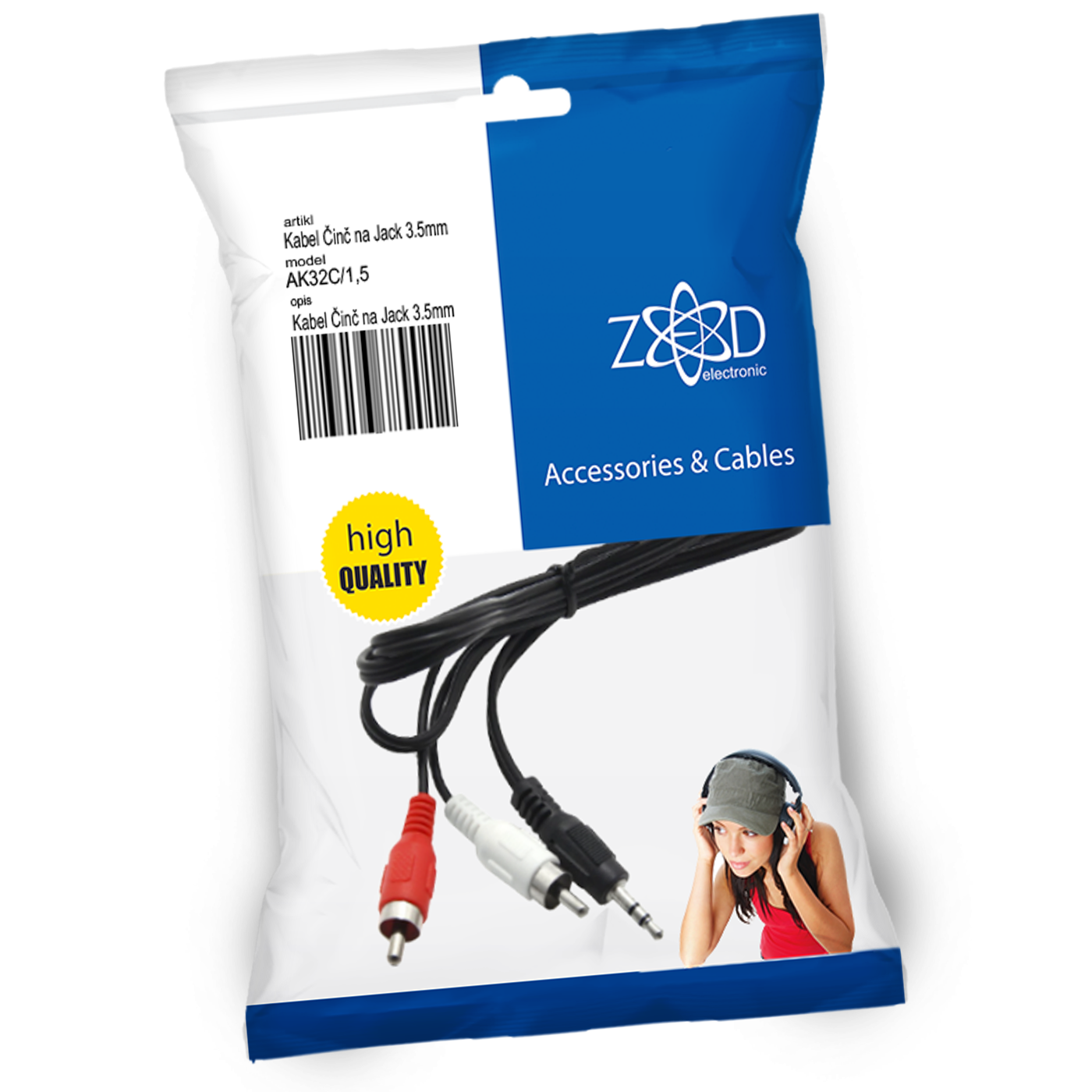 ZED electronic Činč na Jack 3.5mm kabl, dužina 1.5 met. – AK32C/1,5