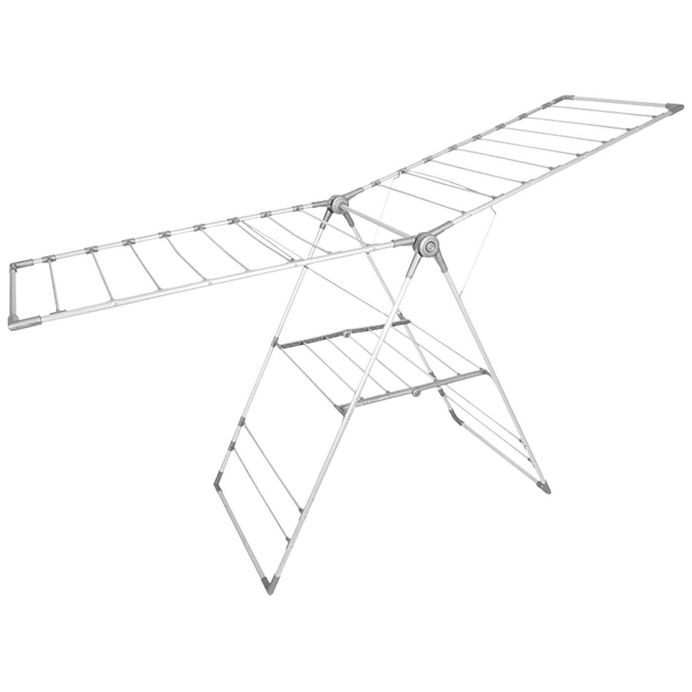 Samostojeće sušilo za rublje visoke kvalitete sa velikim kapacitetom sušenja, materijal izrade aluminij, dužina žice za sušenje 23 met, stabilna konstrukcija, elektrostatički premaz. Sušilo osim u unutarnjem prostoru može se koristiti i vani zbog otpornosti na vanjske vremenske uvjete. Zbog svojih dimenzija i dizajna dobro se uklapa u prostore kao što je balkon, vrt… Sušilo je preklopno te je njegovo skladištenje jednostavno i kao takav ne zauzima puno prostora, a uvijek Vam je na dohvat ruke. Garancija: 24 mjeseci